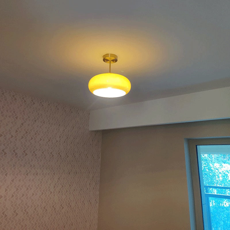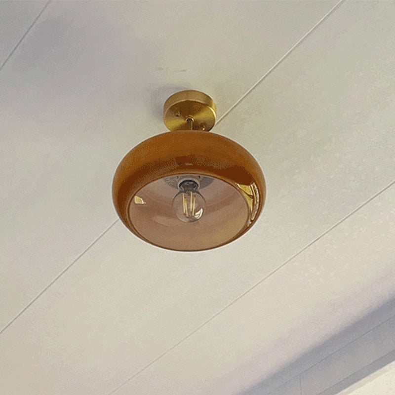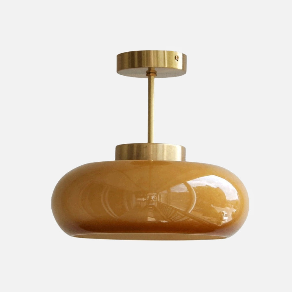 This antique glass ceiling lamp adds a timeless touch to any room. Its artfully crafted glass shade and detailed metal fittings create an air of vintage sophistication. Installing this lamp enhances the ambience of any decor while providing efficient lighting.