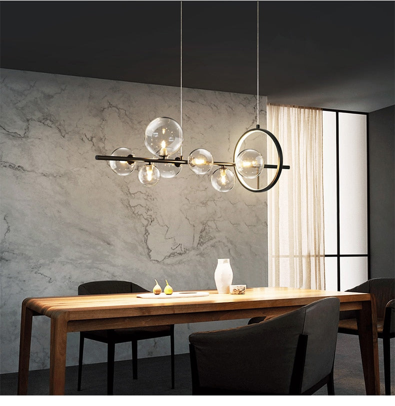 This Bubble Glass Ball Metal Ring Chandelier is perfect for adding an artistic touch to your home. Its elegant metal rings and delicate bubble glass balls make it the perfect centerpiece to any room. The combination of the two materials creates a unique and sophisticated look. Make a statement with this eye-catching chandelier.