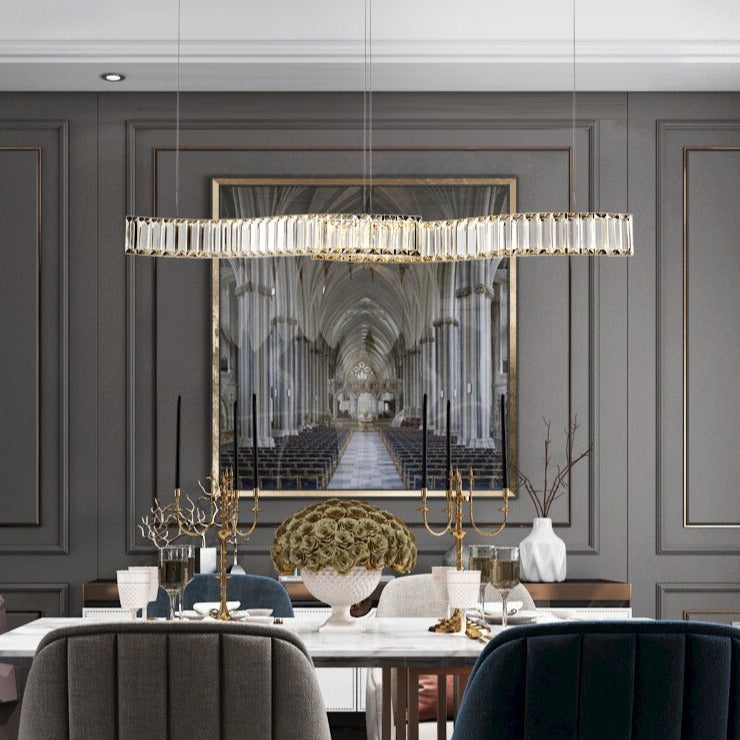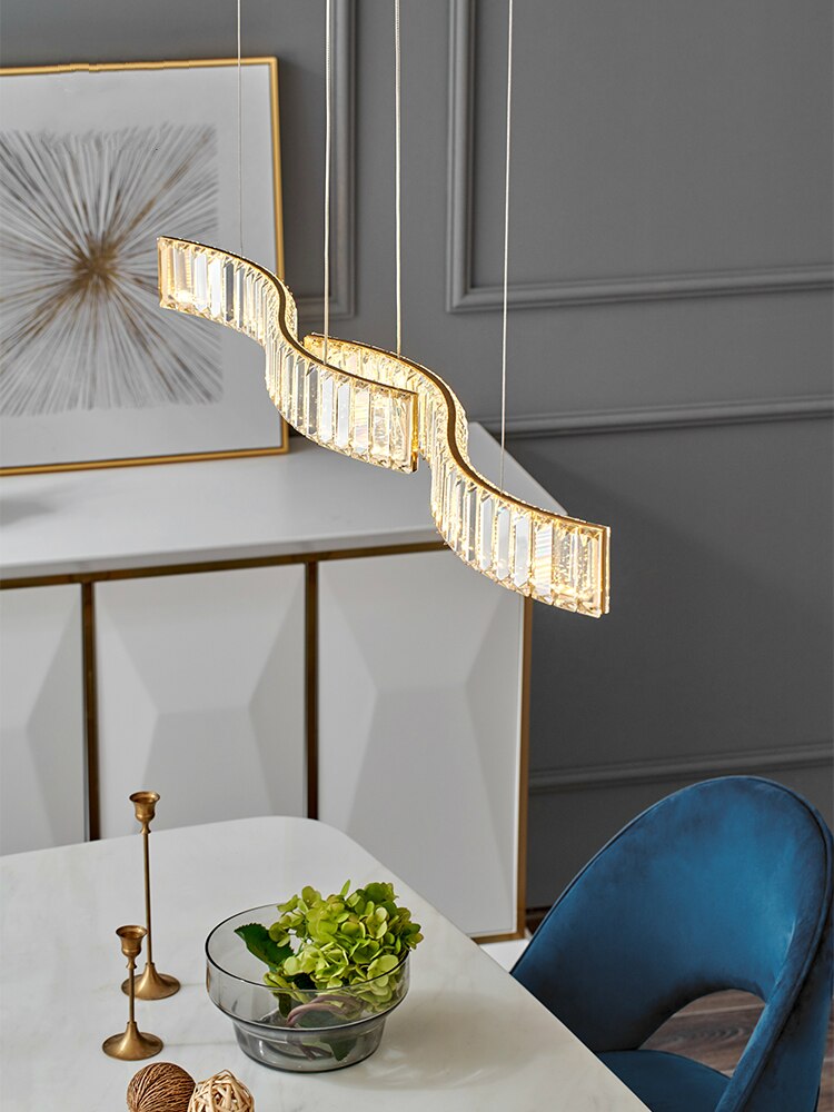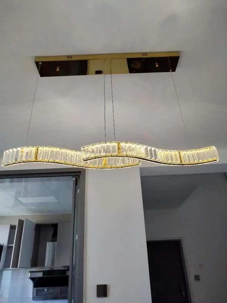 This Crystal Stainless Long Strip Combination Chandelier offers an impressive light source for both homeowners and professionals. Its crystal accents and stainless steel frame provide a luxurious look, while the long strips of overlapping light make it an ideal choice for a variety of settings.