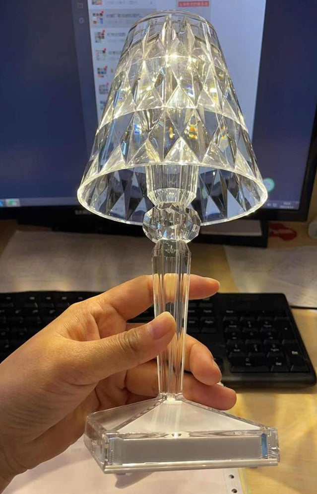This Dazzling Diamond Glass Table Lamp is a unique yet timeless addition to any décor. Boasting a sleek design with diamond-cut glass, this bulbous lamp is sure to make a statement in your home. It provides a gentle yet generous light, thanks to the high-quality light bulb included. Illuminate your living space today.