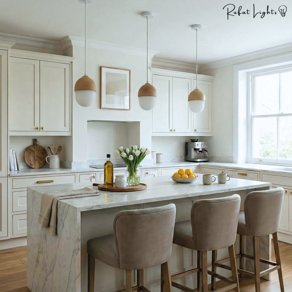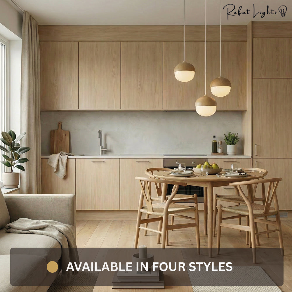 These versatile and elegant pendant lights are perfect for a nursery, suspended above bedside tables or used as thoughtful wedding, engagement or housewarming gifts. Add style to your home with Moon Glass & Wood Acorn Pendants.