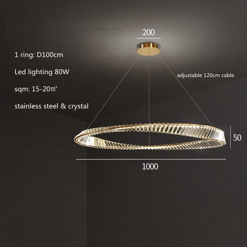 This Gold Plated K9 Crystals Irregular Ring Chandelier adds a striking touch to any room. Crafted with gold plated K9 crystals in an irregular shape, it adds a beautiful sparkle to your space. Thanks to its durable design, this light fixture will stay looking great for years to come.
