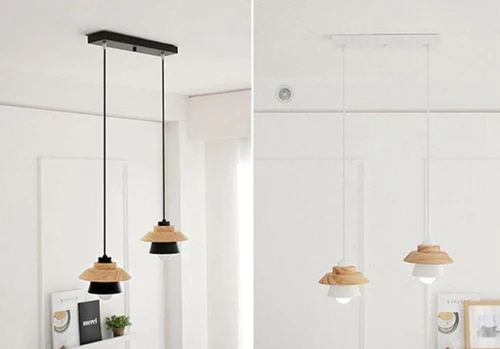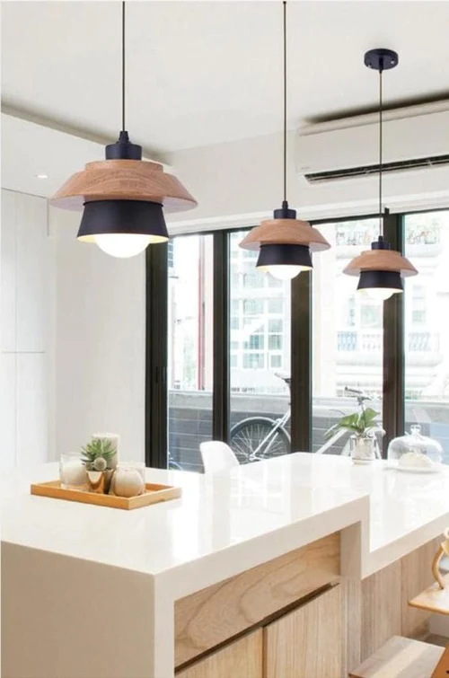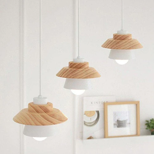 LED Pendant Light with Wood and Metal Layers