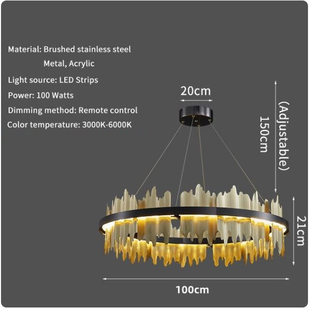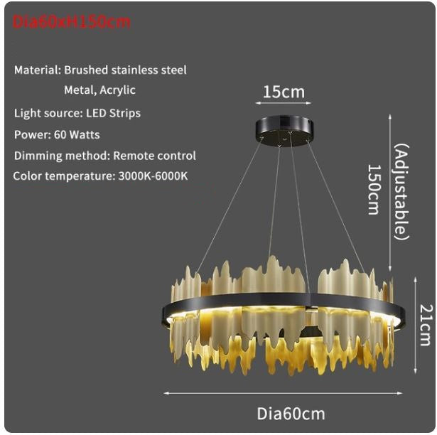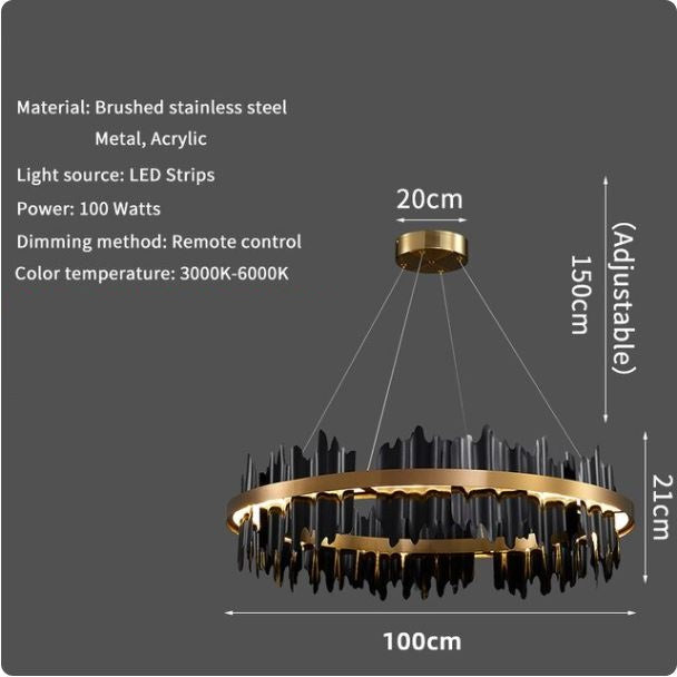 This Luxury Metal Round Circle Design Chandelier adds an elegant touch to any room. Constructed from durable metal with a round circle design, it will provide years of beauty and sophistication to any space. It ensures brightness and clarity in your home for a luxurious atmosphere.