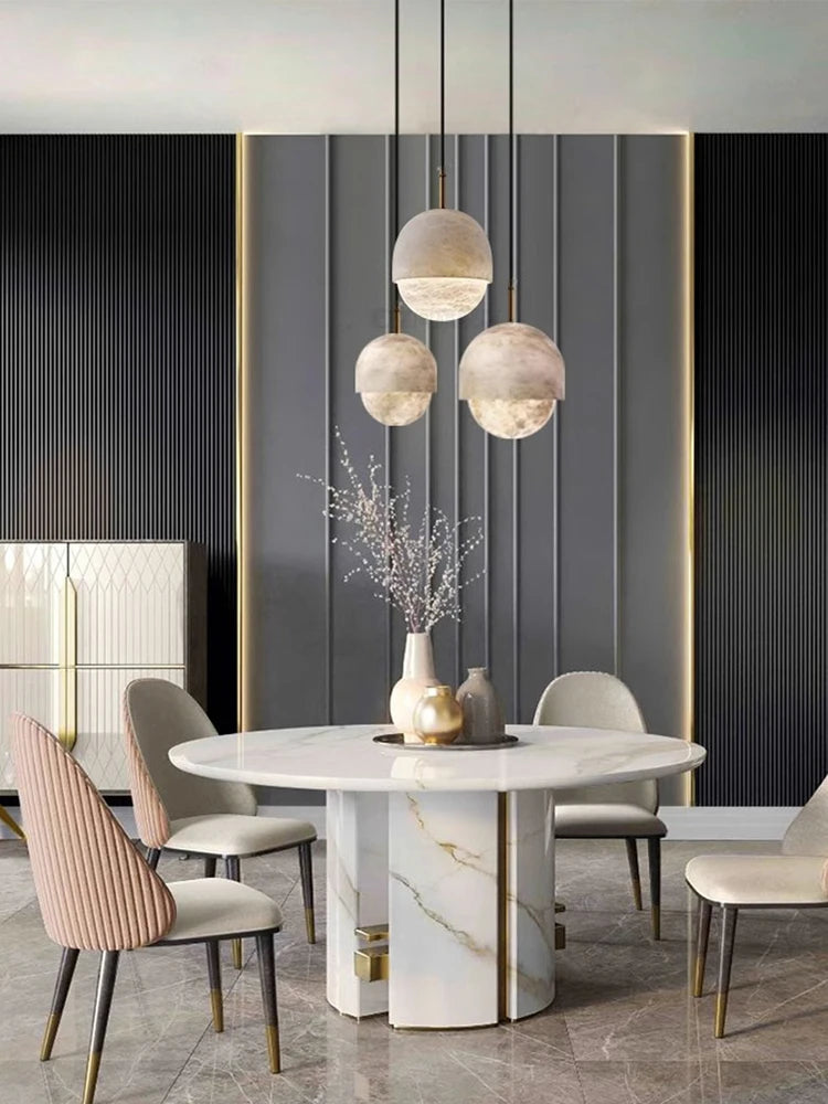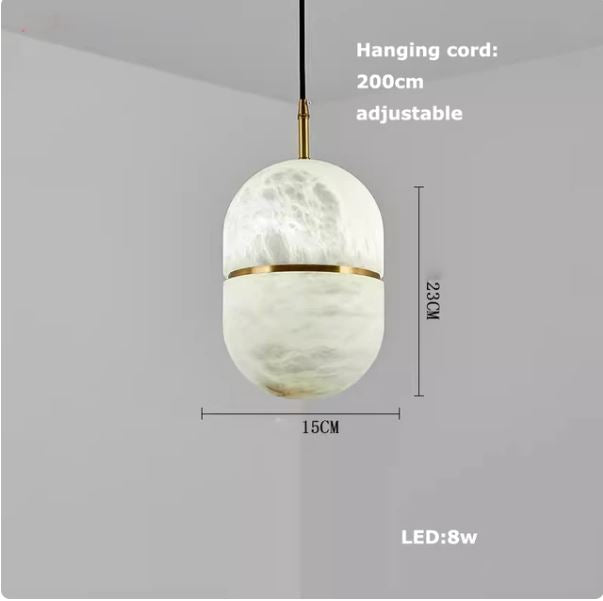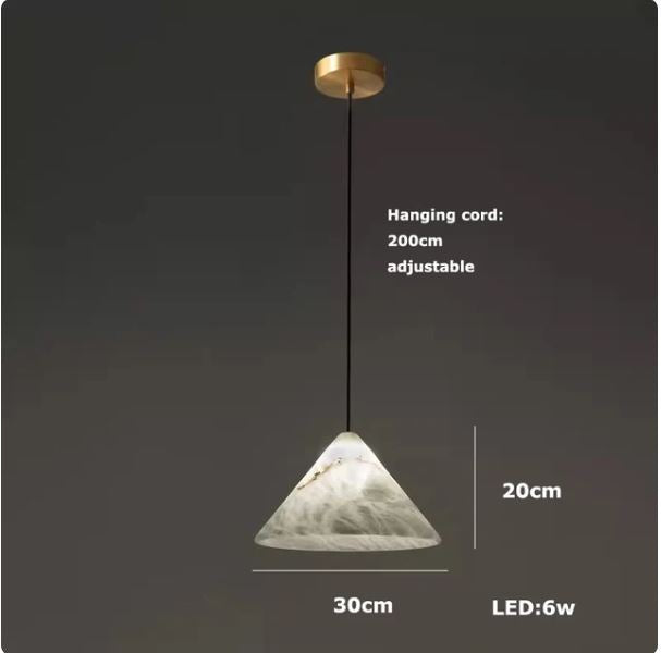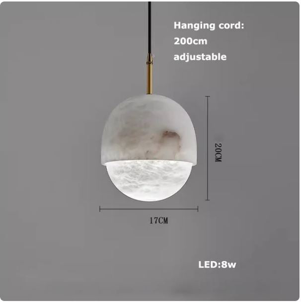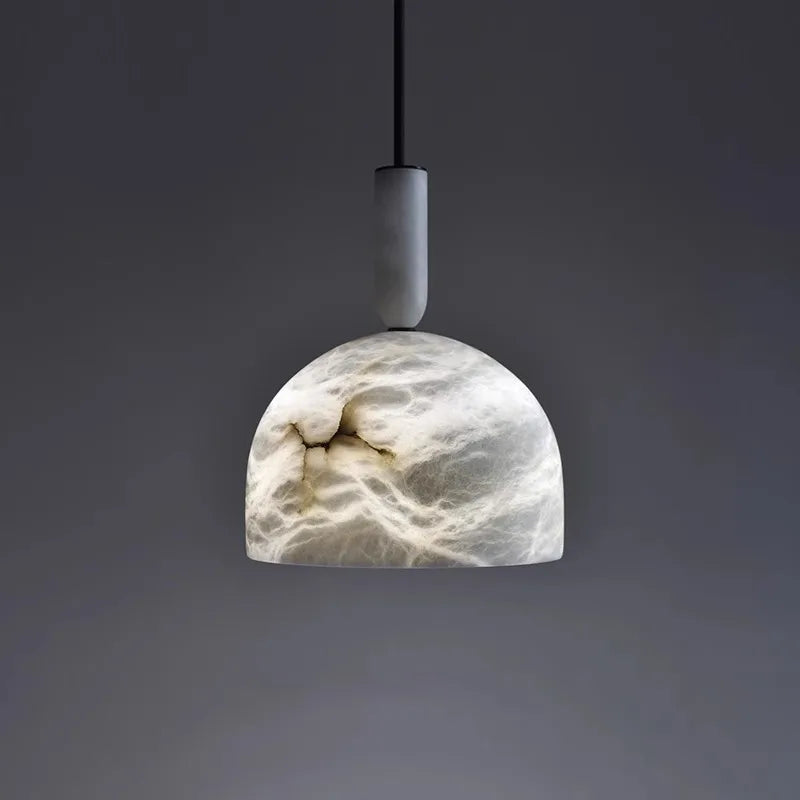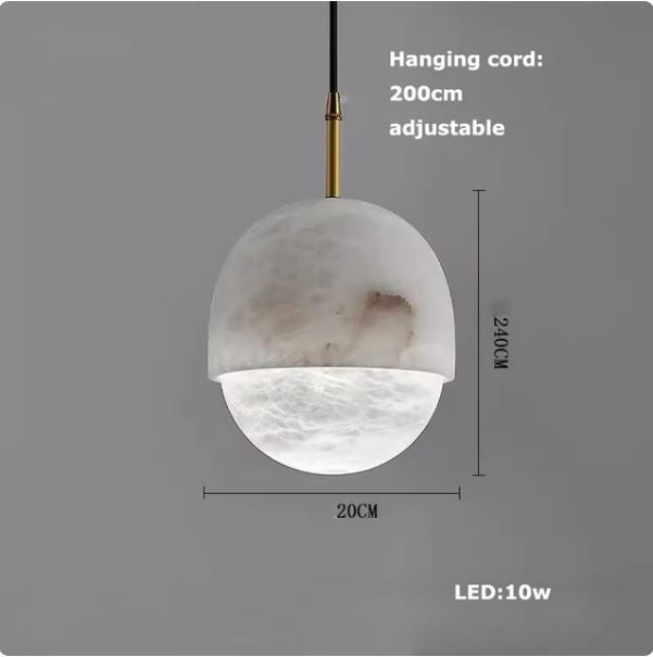 This pendant light is crafted with natural marble, providing an elegant, modern look for any home. Its sleek design allows for ample lighting, perfect for illuminating your living space. Upgrade your lighting with this designer piece.
