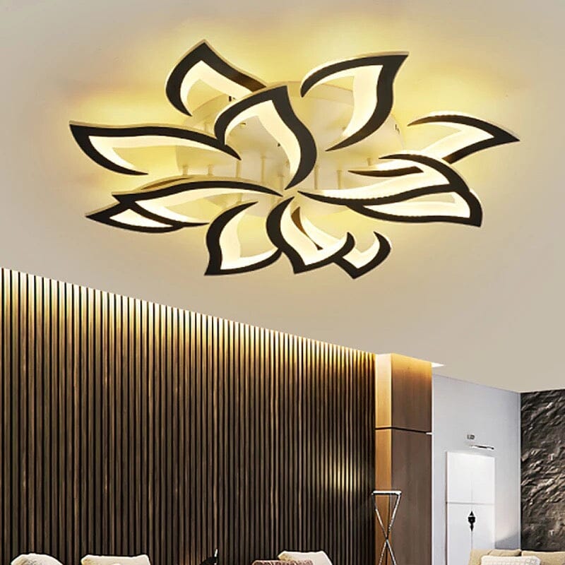 This modern chandelier lamp is the perfect combination of beauty and functionality. Crafted from elegant acrylic and iron, this lamp makes a stylish statement in any living space. Its intricate flower design creates a timeless and unique look that will brighten up your home.