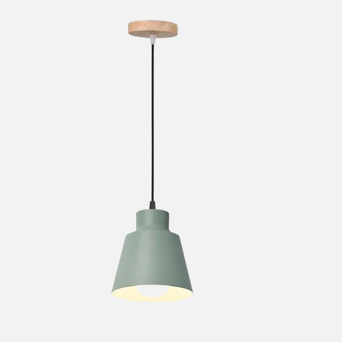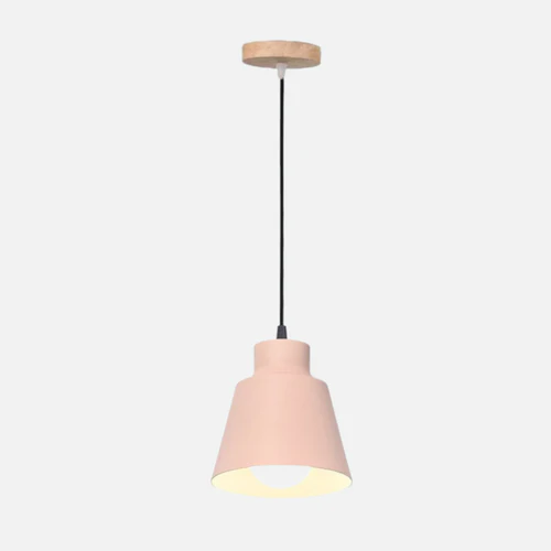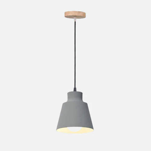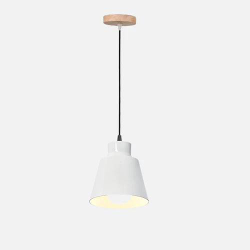 A lighting fixture that features a cone-shaped lampshade suspended from a cord or chain. It is designed to hang from a ceiling and provides focused lighting that can be directed downwards. The lampshade is typically made of metal or glass, and the overall design is sleek and modern. It is often used in contemporary or minimalist interior design styles.
