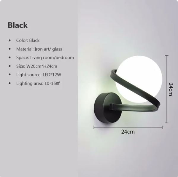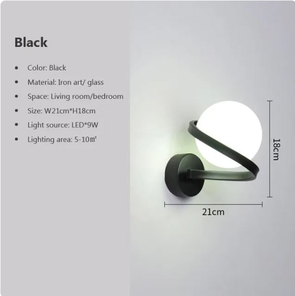 This modern wall light features an elegant iron spiral line that delicately encompasses a round ball. This sophisticated design is perfect for any room, providing soft, ambient light that is sure to impress.