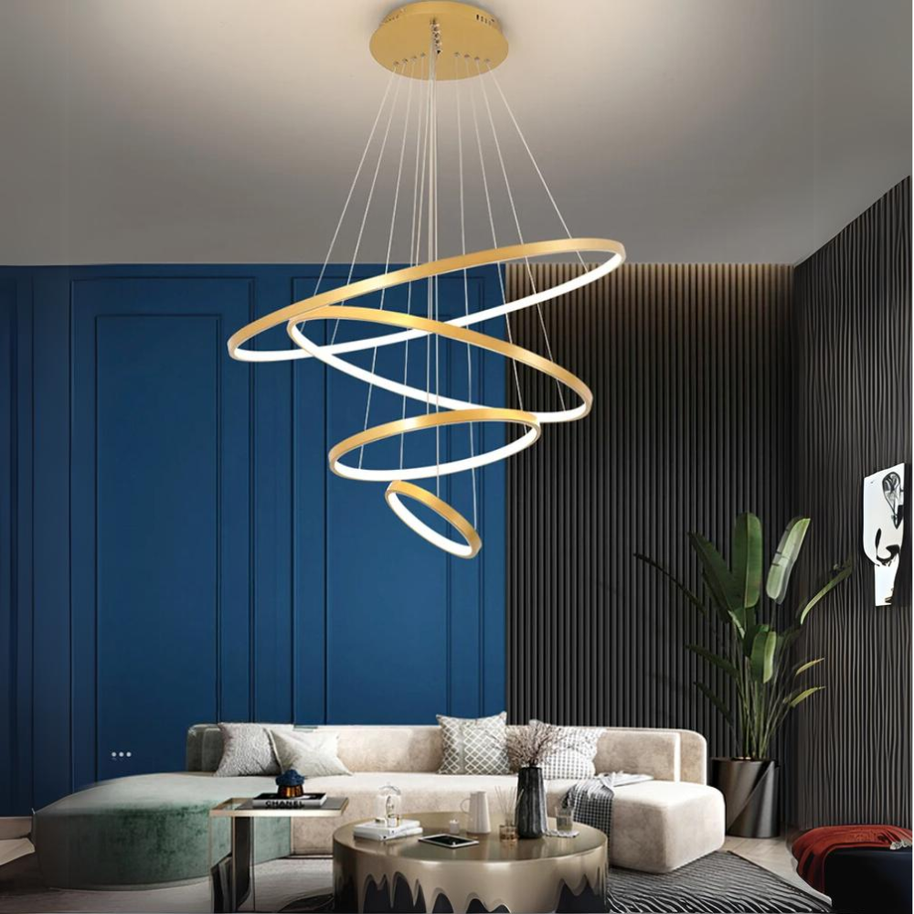 Enhance the style and sophistication of any room with the modern LED Rings Circle Hanging Chandelier. Crafted from high-quality materials and featuring elegant LED lighting, this luminous chandelier is the perfect way to elevate the look of any home.