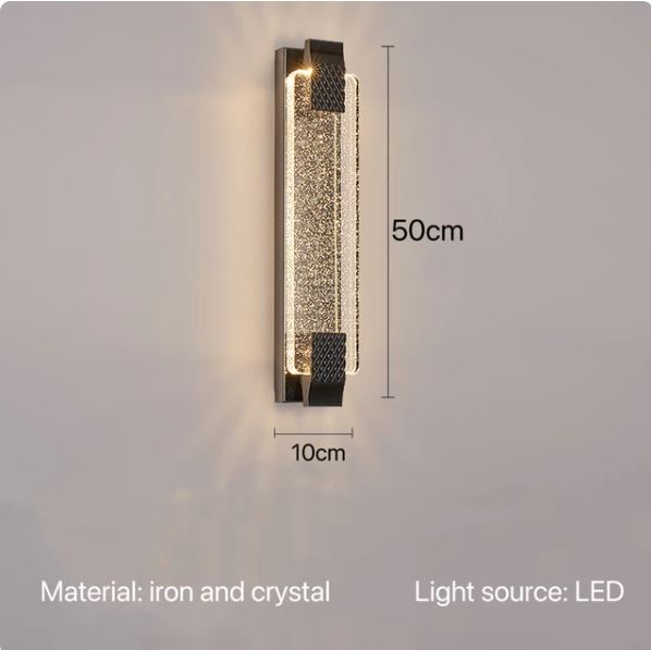 This Modern Luxury Crystal Rectangular Bubble Wall Lamp adds a touch of glamour to any interior. Its elegant design features sparkling cut crystals that create a luminous atmosphere without sacrificing style. With its bright illuminating light, it will be sure to add a unique look to any room.