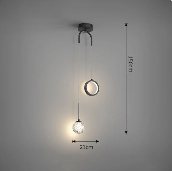 This modern ring pendant light is an eye-catching addition to any room. The glass ball LED light is encircled in a modern ring for a sleek and stylish look, emitting a warm and inviting glow. Perfect for adding an element of sophistication to your space.