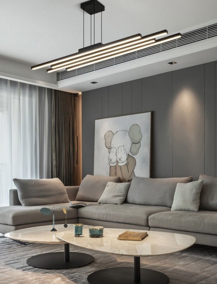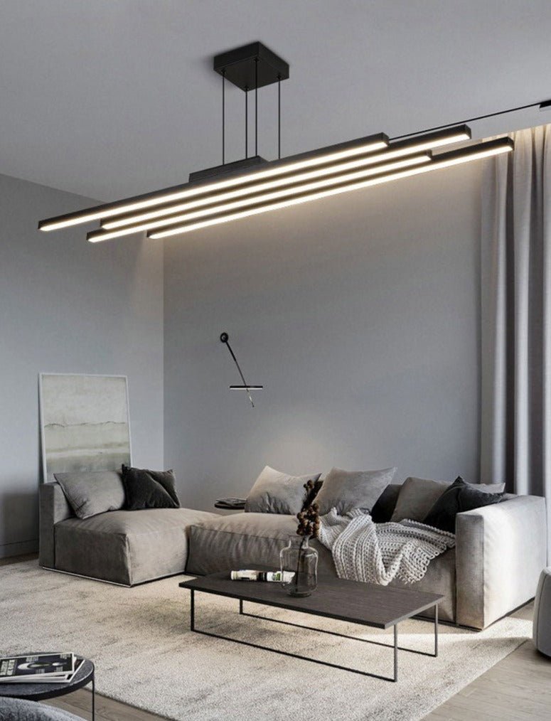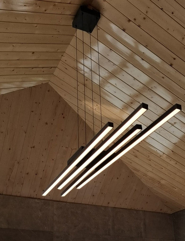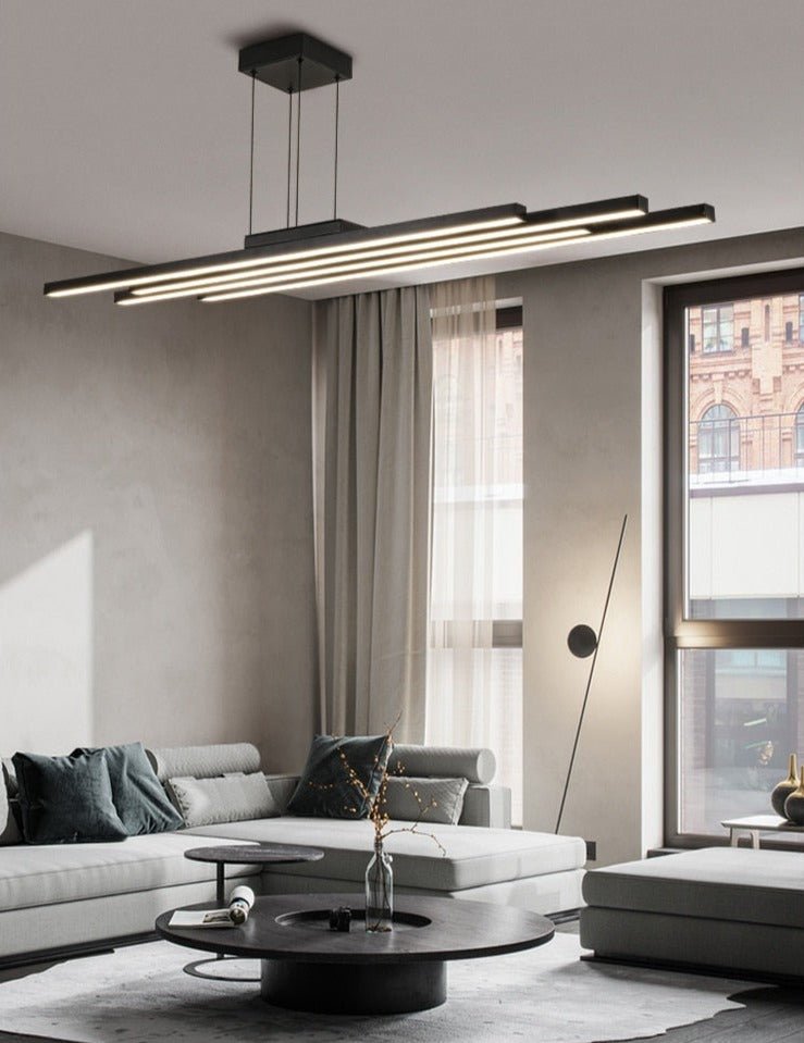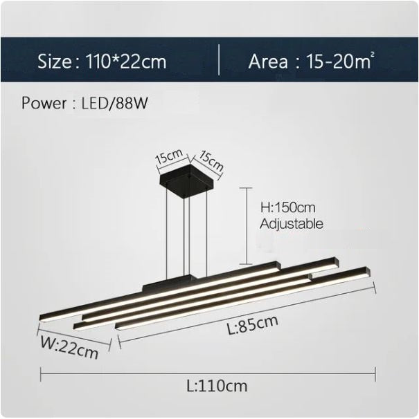 This Nordic Modern Minimalist LED Chandelier is made of aluminum material for a stylish and modern look. With its slim design and bright LED lighting, it offers a bright and modern atmosphere to any space.