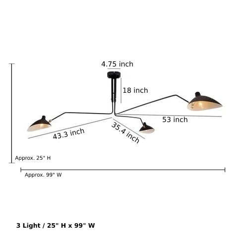 Canopy: 4.75" Diameter x 1.5" H / 12.0 cm*3.81 cm Center Pole Height: 12" / 18" / 28" (excluding lampshade arm center length) 3 Light: Approx. 19" H x 65" W Approx. 19" H x 81" W Approx. 19" H x 99" W Approx. 25" H x 65" W Approx. 25" H x 81" W Approx. 25" H x 99" W See detailed images for more size information 6 Heads: Approx. 35" H x 110" W / 88.9 cm*279.4 cm |