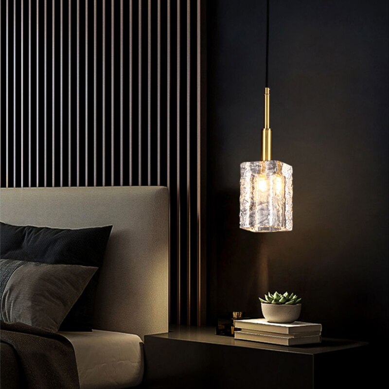 Rectangle Glass Crystal Copper Gold Pendant Light