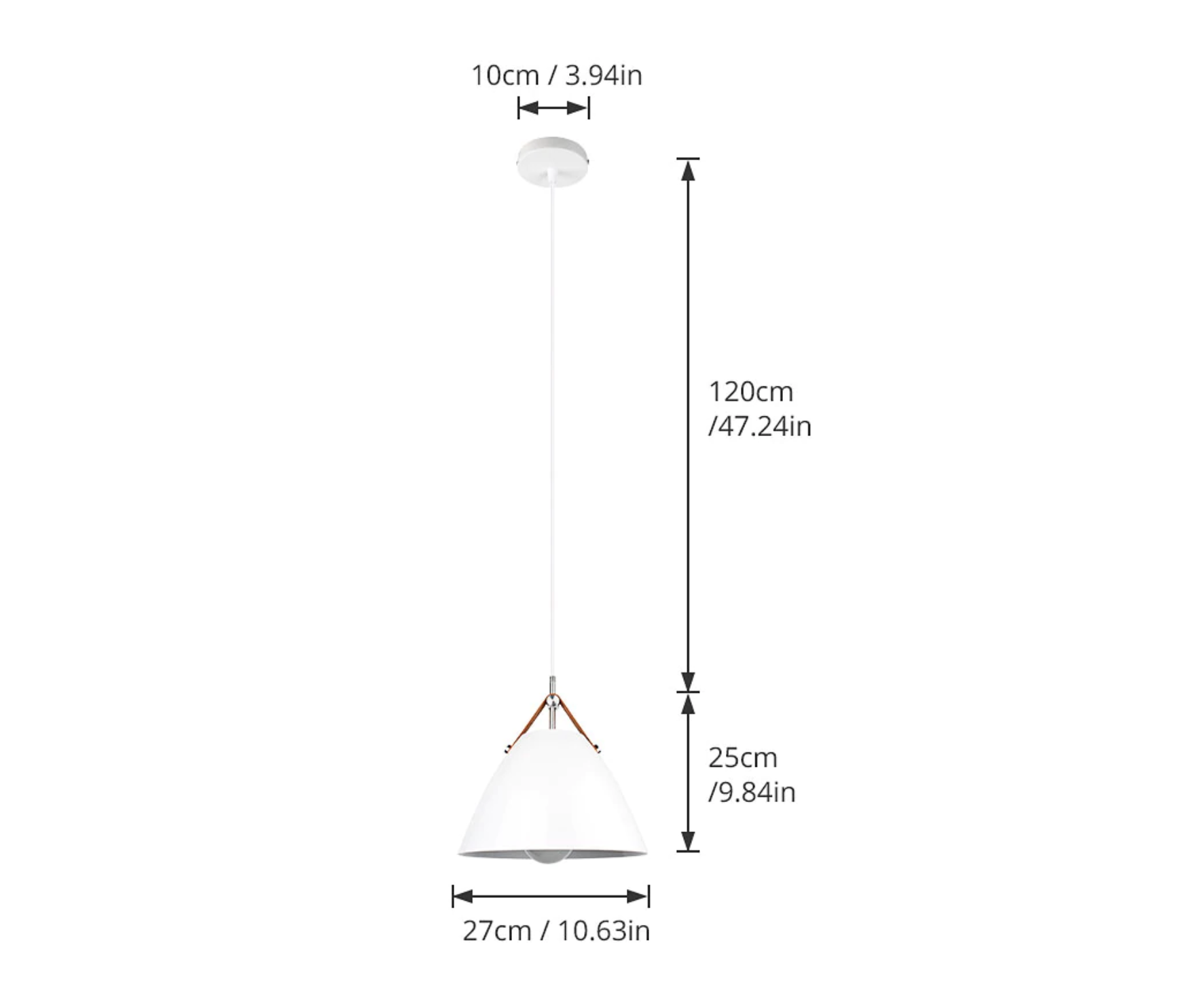 Lampshade diameter: 10.6 inches / 26.9 cm Cord pendant: 47 inches / 119.3 cm , adjustable |