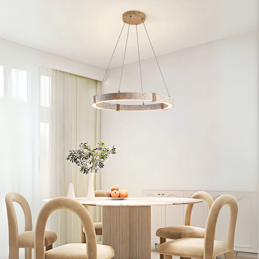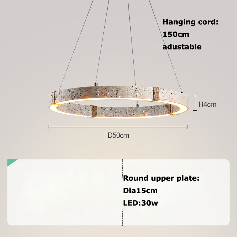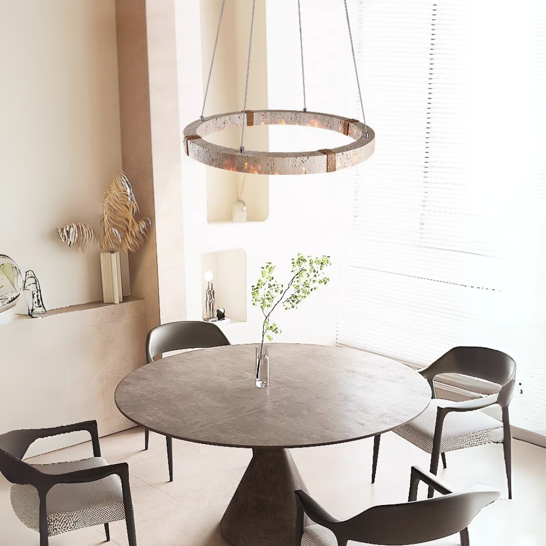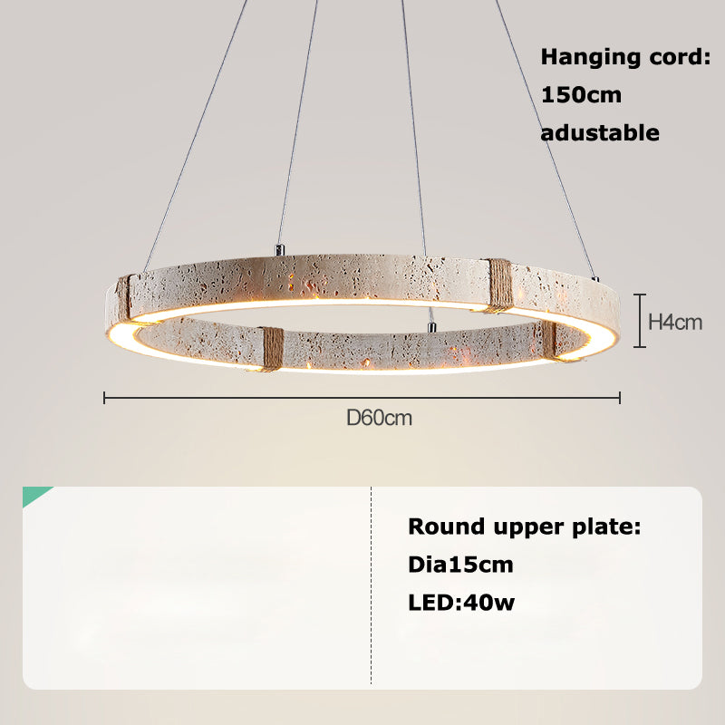 Experience the luxurious beauty of our Travertine Stone Ring Chandelier Lighting. Made from natural travertine stone, this chandelier adds a touch of elegance to any room. With its unique appearance and durable construction, it's the perfect addition to your home or business. Enhance your space with the timeless charm of travertine stone.