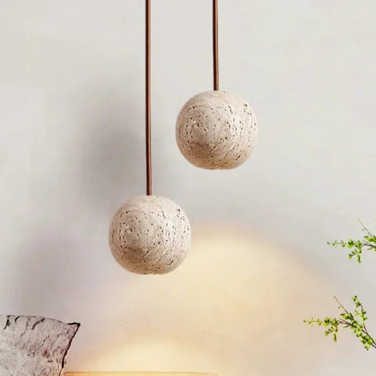 Illuminate your space with the natural beauty of our Wabi Sabi Travertine Pendant Light. Crafted from modern natural wood, this light features a unique rock stone design that adds a touch of elegance and warmth to any room. Experience the perfect balance of nature and contemporary style.