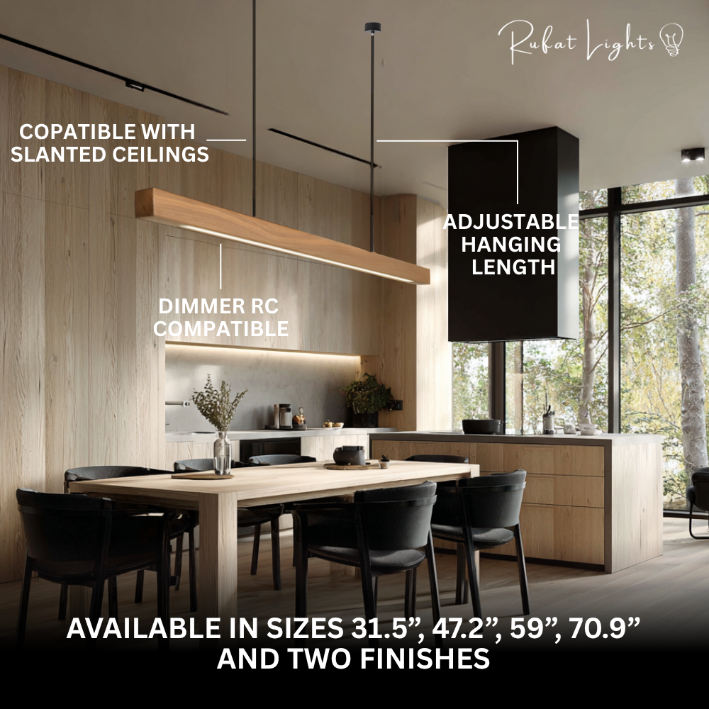 The Wood Linear Chandelier includes the necessary mounting hardware for easy installation. This hanging light is compatible with most types of ceilings & will make any room's lighting centerpiece.