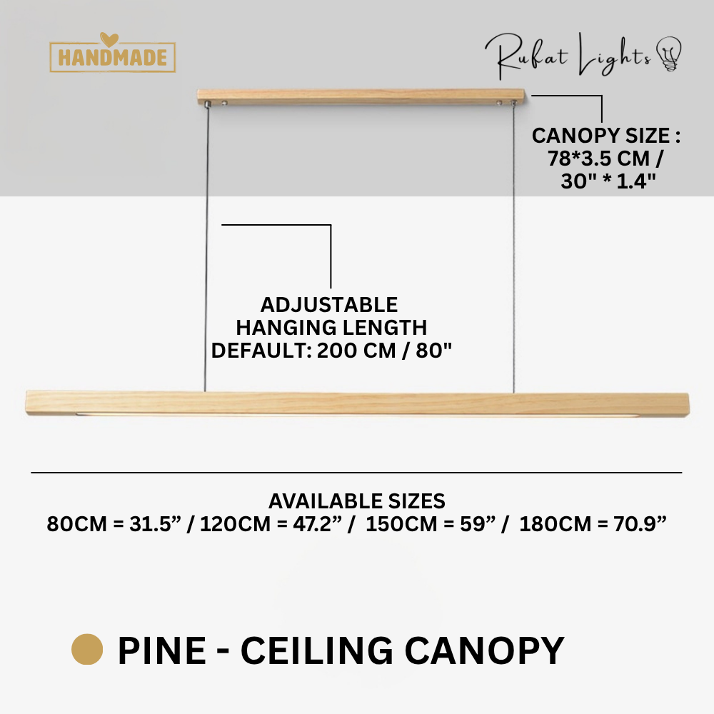 80cm lamp with 50cm canopy (high 2 cm, width 3.4 cm) 80CM = 31.5”, 120CM = 47.2”, 150CM = 59”, 180CM = 70.9” |